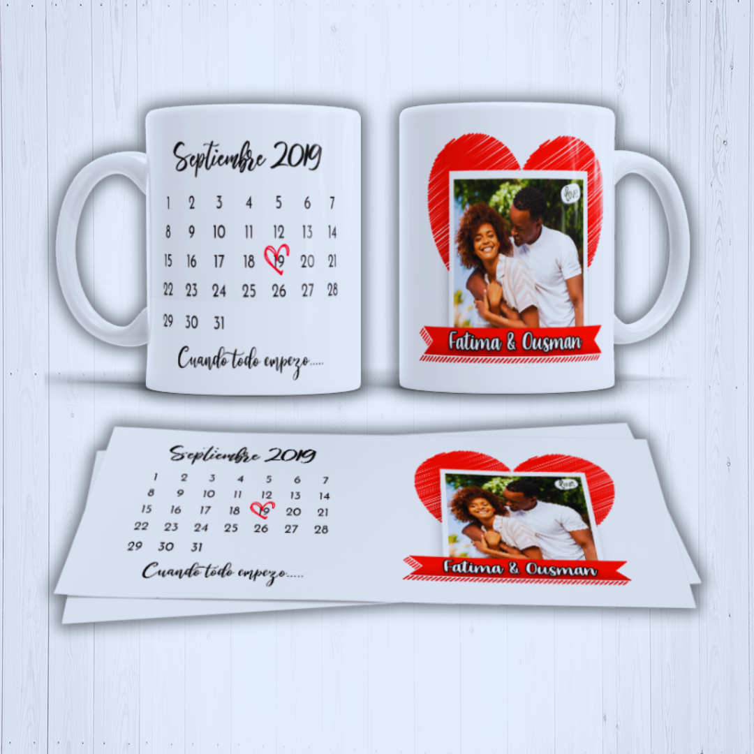 Sorprende a tu persona especial con este pack personalizado: taza, cuadro y llavero con fotos y la fecha más importante de su historia 💖