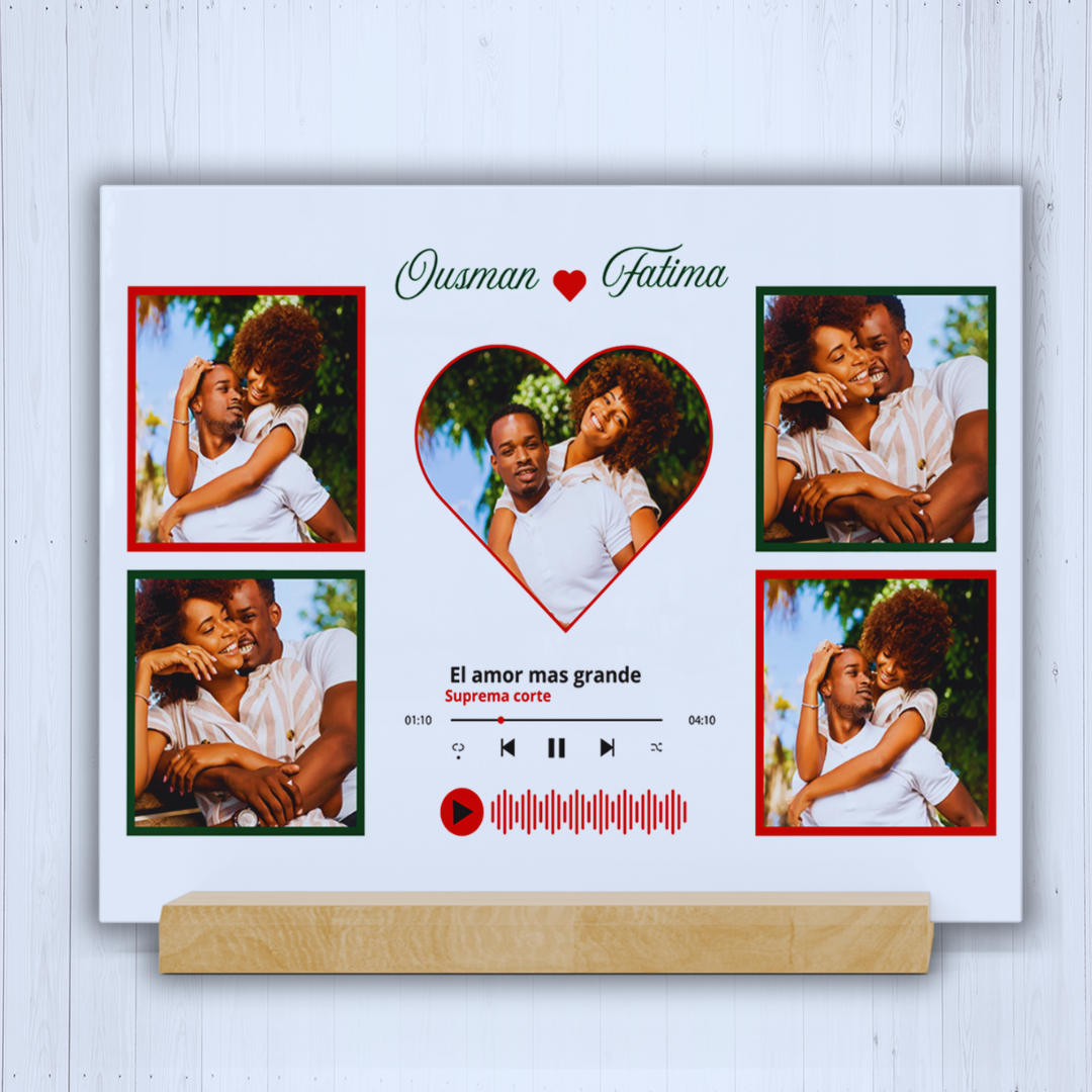 Un diseño elegante que combina vuestras mejores fotos con la canción que marcó vuestra historia, creando un detalle lleno de emoción y significado.