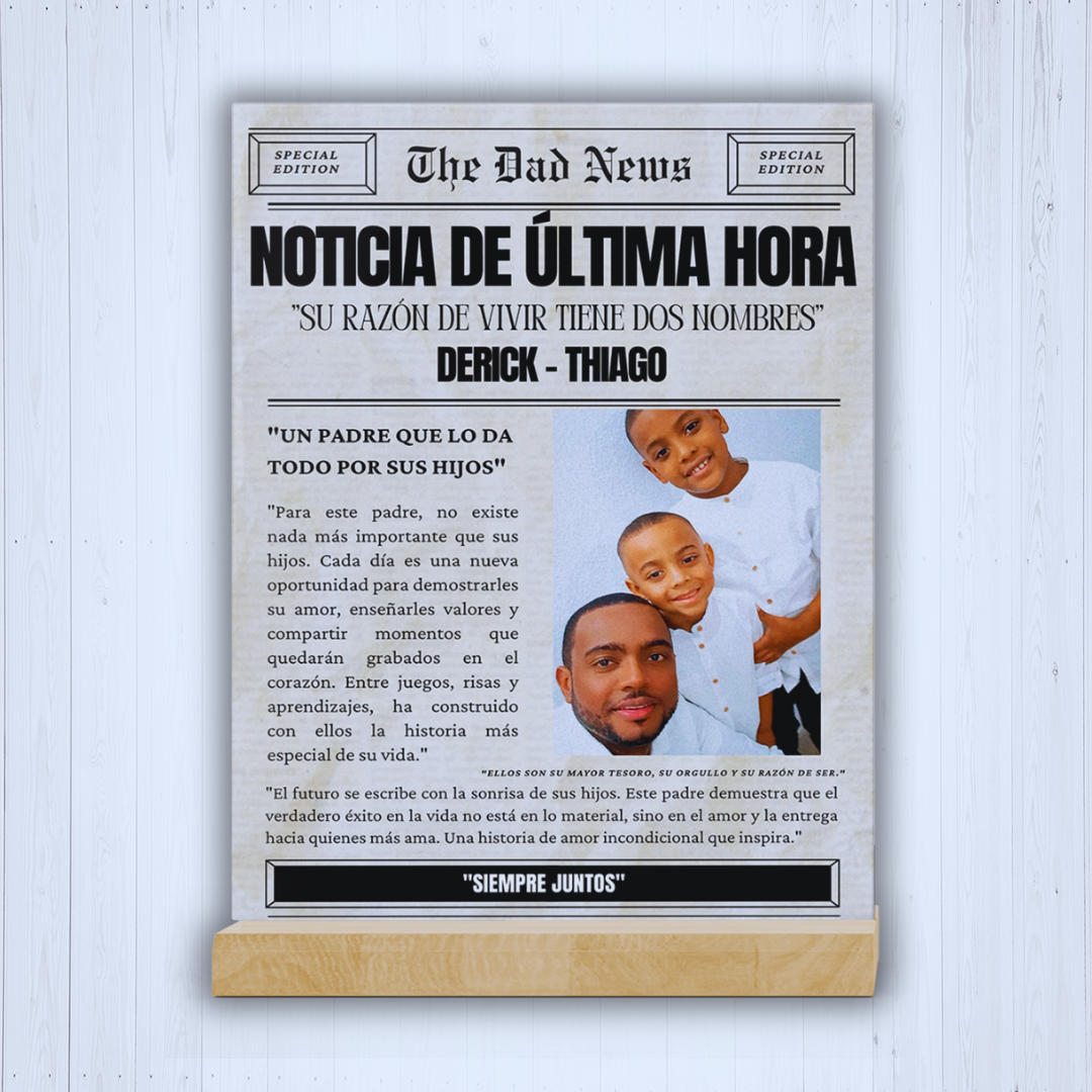 "La mejor noticia no sale en los periódicos… ¡se escribe con tu historia! Con nuestra portada personalizada estilo periódico podrás convertir a tus seres queridos en protagonistas de la primera plana. Ideal para celebrar el amor de pareja, la unión familiar, la amistad o simplemente un momento especial que merece recordarse para siempre.